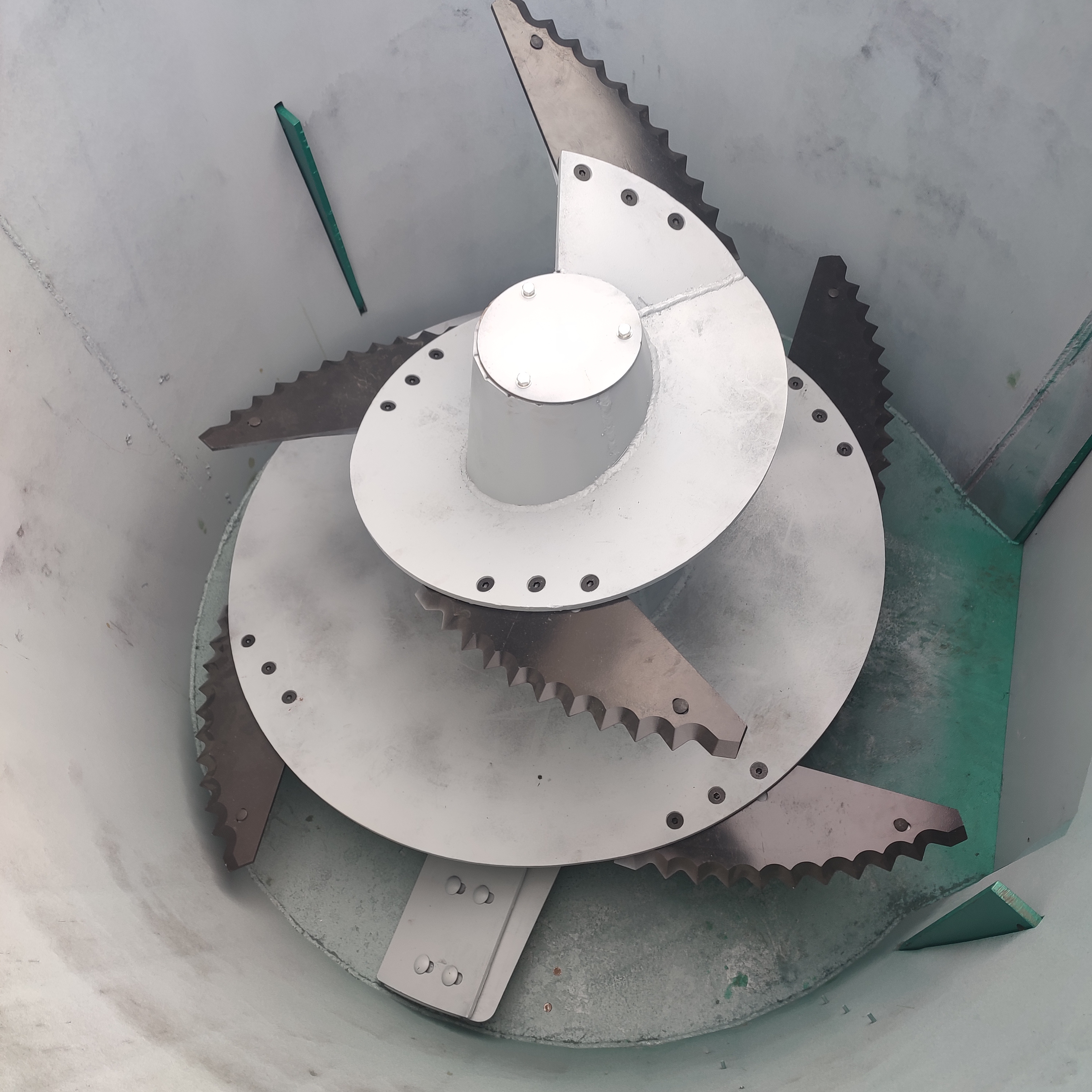 Driven by the motor and reducer, the central shaft drives the auger blades to rotate. The feed is cut by means of the auger and the rotation of the blade.