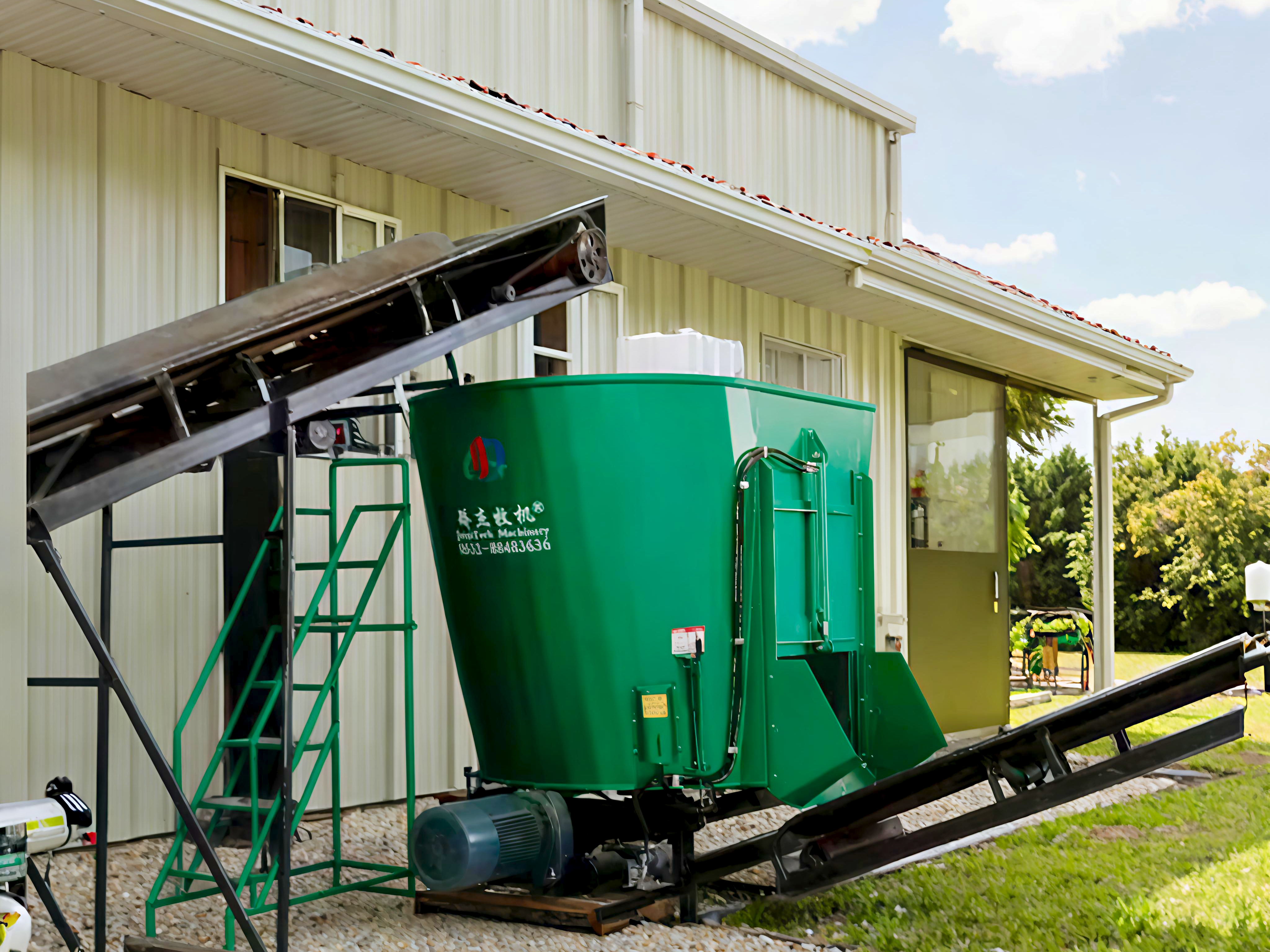 6-7 cubic meter stationary feed mixer is suitable for medium-sized farms. The box material is made of Q355B steel plate, which is wear-resistant and corrosion-resistant. Driven by a motor for mixing, equipped with a single vertical auger and weighing system, stable and durable, low maintenance cost.